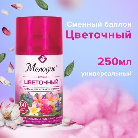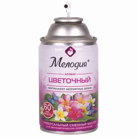Картридж аэрозольный 250 мл МЕЛОДИЯ Цветочный для автом освеж универ сух расп 1/6