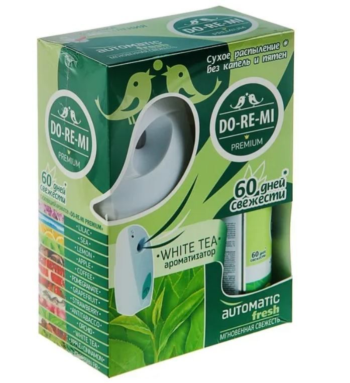 Освежитель воздуха автоматический 250мл До-ре-ми диспенсер+картридж Белый чай 1/4