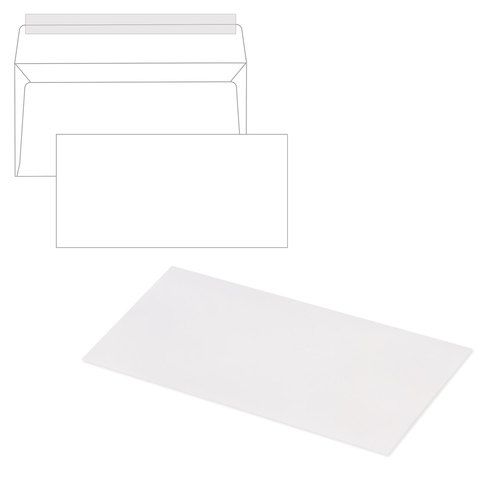 Конверты Е65 110х220мм 80 г/м2 отрывная полоса STRIP белые 1000/1000