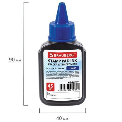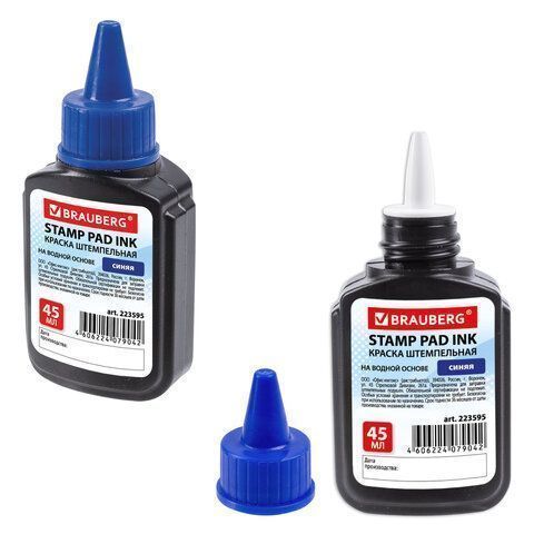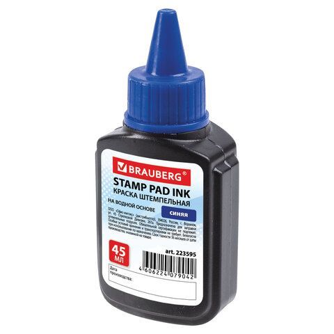 Штемпельная краска синяя 45мл на водной основе Brauberg 1/12