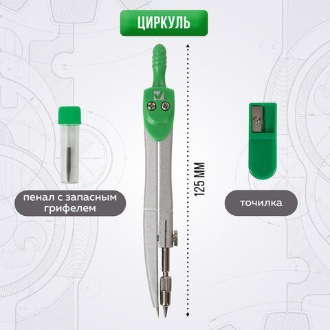 Готовальня 3 предмета циркуль 125мм точилка, грифель, пенал с европодвесом BRAUBERG 1/24 оптом и в розницу в Казани купить