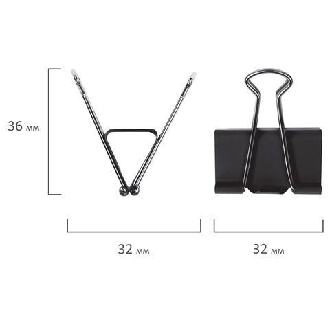—Зажимы для бумаг 32мм на 140л (12шт) черные в картонной коробке Staff 1/12/240