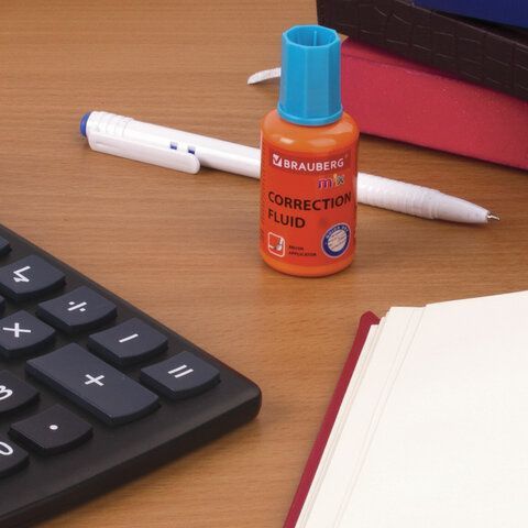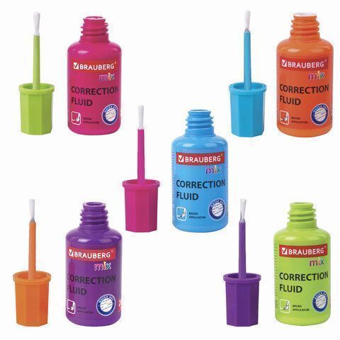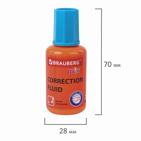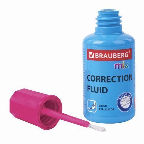 Корректирующая жидкость штрих 20мл флакон с кисточкой быстросохнущая MIX BRAUBERG 1/15