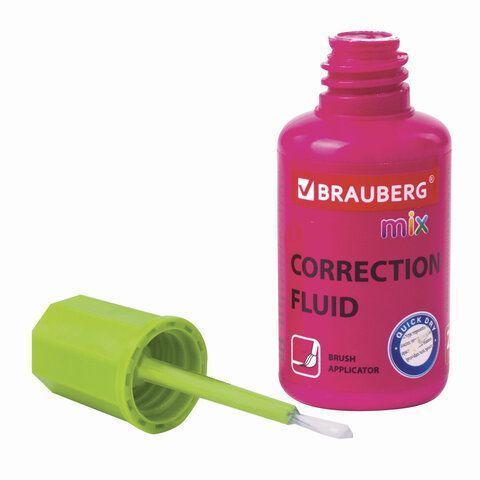 —Корректирующая жидкость штрих 20мл флакон с кисточкой быстросохнущая MIX BRAUBERG 1/15