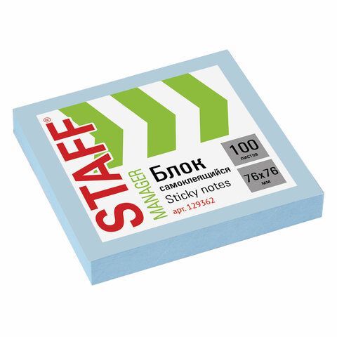 Блок самоклеящийся 76х76мм 100л голубой пастель STAFF 1/12