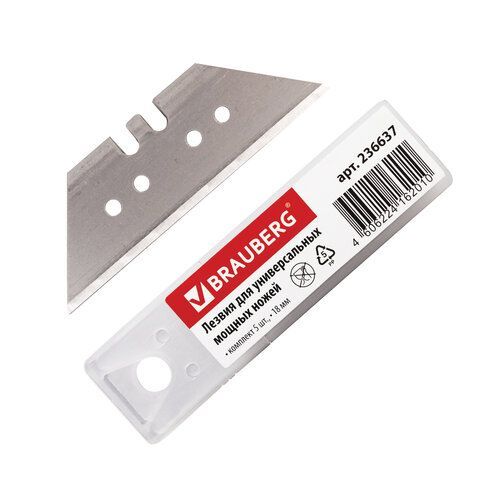 Лезвия для ножей 18мм 5шт BRAUBERG форма-трапеция в пласт пенале 1/10