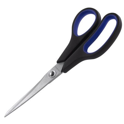 Ножницы 216мм метал черно-синие вставки европодвес Soft Grip Brauberg 1/12 купить оптом и в розницу в Казани