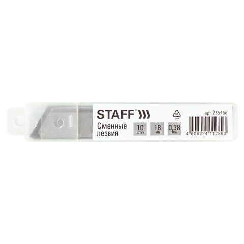 Лезвия для ножей 18мм 10шт толщ лезвия 0,38мм эконом STAFF 1/10/400 купить оптом и в розницу в Казани