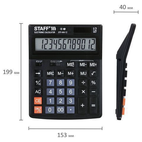 Калькулятор настольный STAFF STF-444-12 (199x153мм), 12 разрядов, двойное питание