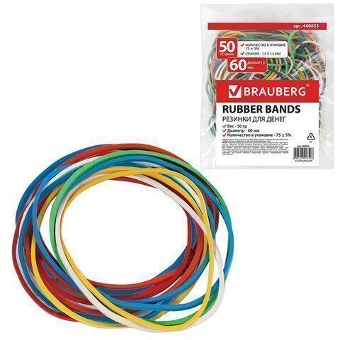 Резинка банк 50гр 60мм цветные BRAUBERG 1/20/400 купить оптом и в розницу в Казани