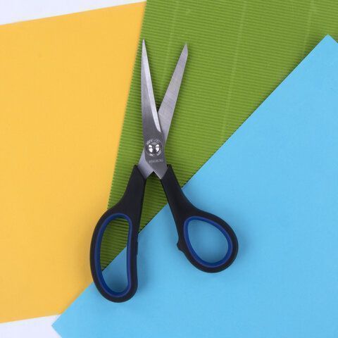 Ножницы 190мм метал черно-синие вставки европодвес Soft Grip Brauberg 1/12 купить оптом и в розницу в Казани