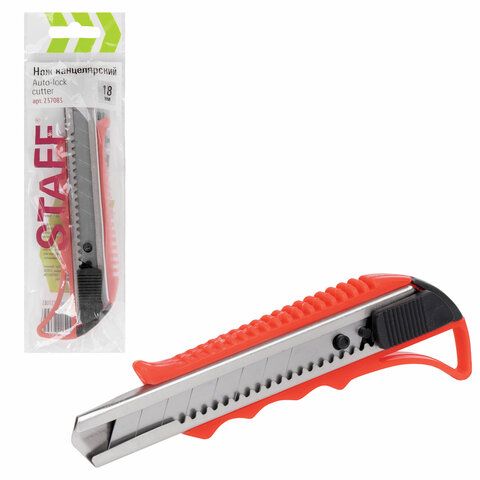 Нож канцелярский 18мм усиленный металические направляющие автофиксатор Profit Staff 1/20/720 купить оптом и в розницу в Казани