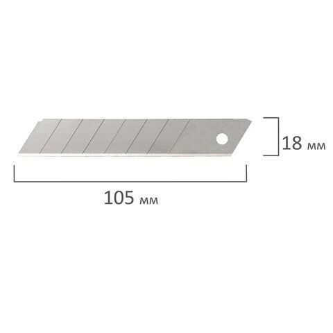 —Лезвия для ножей 18мм 10шт толщина лезвия 0,5мм в пл. пенале BRAUBERG 1/10
