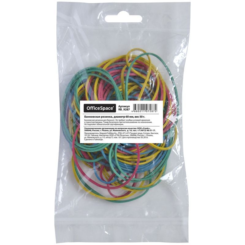 Резинка банк 50г 60 мм OfficeSpace цветная 1/400 купить оптом и в розницу в Казани