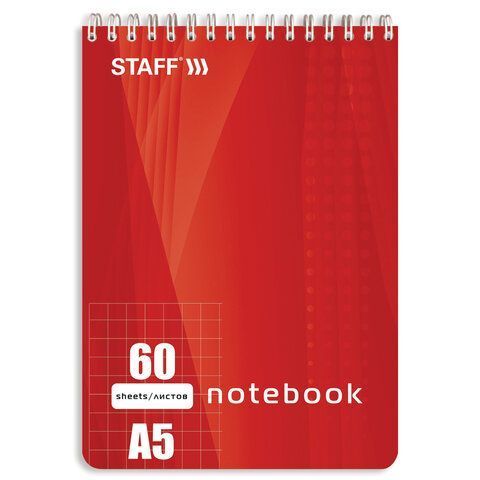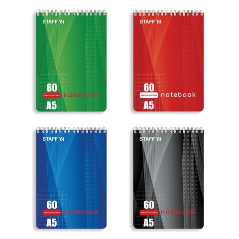 Блокнот А5 (146х205мм), 60л, гребень, картон, подложка, клетка, STAFF, 4 вида 1/4/12