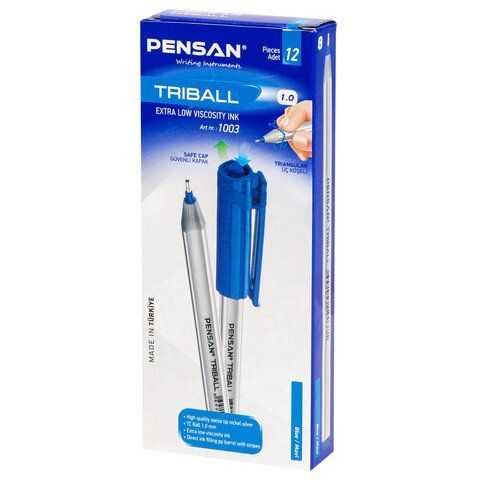 Ручка шариковая масляная синяя PENSAN Triball трехгранная узел 1мм линия 0,5мм 1/12