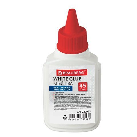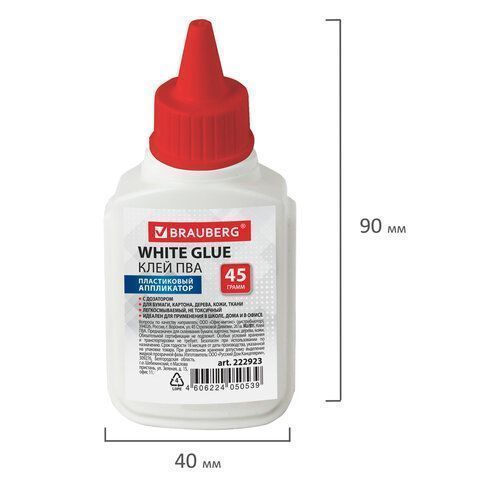 Клей ПВА 45г бумага, картон, дерево BRAUBERG 1/10/80 купить оптом и в розницу в Казани
