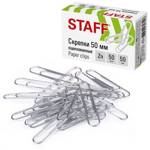 —Скрепки 50мм 50шт большие оцинкованные в картонной коробке STAFF 1/10/300