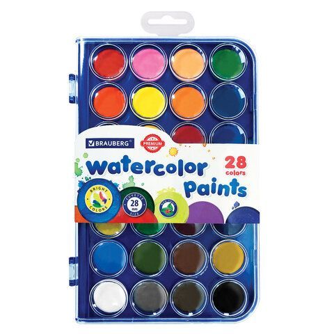 Краски акварельные 28цв кюветы 28 мм пенал BRAUBERG PREMIUM
