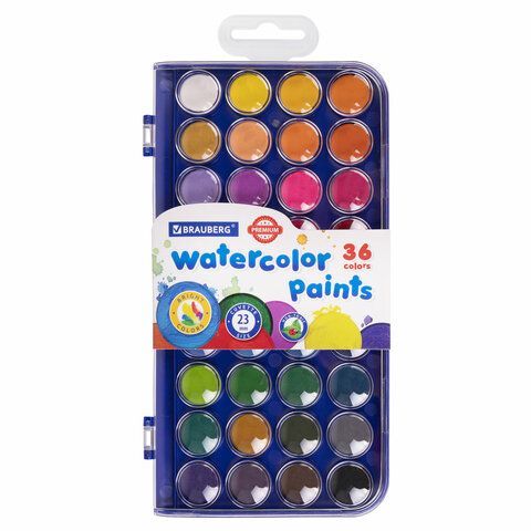 Краски акварельные 36цв круглые кюветы 23 мм пенал BRAUBERG PREMIUM купить оптом и в розницу в Казани