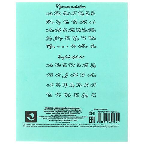 Тетрадь 12л линия косая с полями офсет ЗЕЛЕНАЯ обложка ПЗБМ 1/300 купить оптом и в розницу в Казани