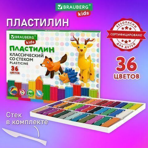 —Пластилин BRAUBERG KIDS 36цв 720г стек
