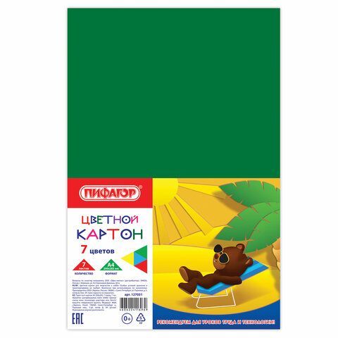 Цветной картон А4 7л 7цв немелованный (матовый) ПИФАГОР 1/60 купить оптом и в розницу в Казани
