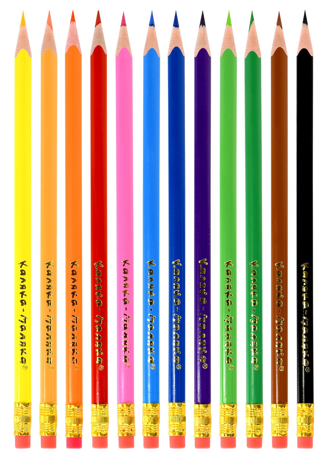Карандаши цветные 12цв трехгранные заточ с ластиком Каляка-Маляка 1/12/240 оптом и в розницу в Казани купить