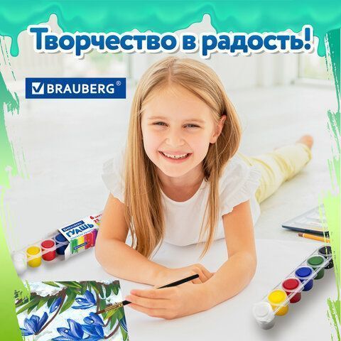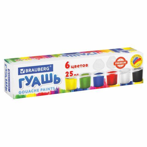 Гуашь 06цв 25мл BRAUBERG PREMIUM 1/18/72 купить оптом и в розницу в Казани