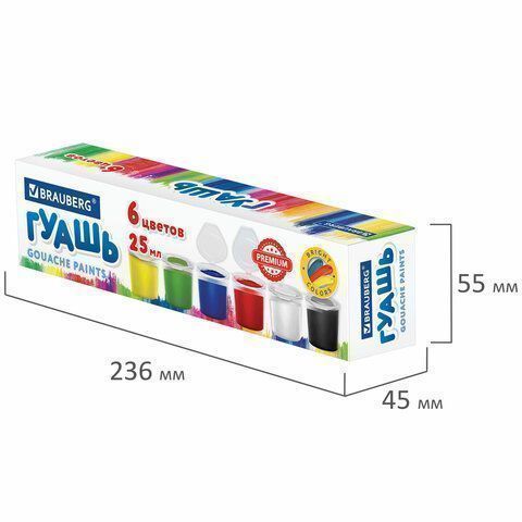 —Гуашь 06цв 25мл BRAUBERG PREMIUM 1/18/72
