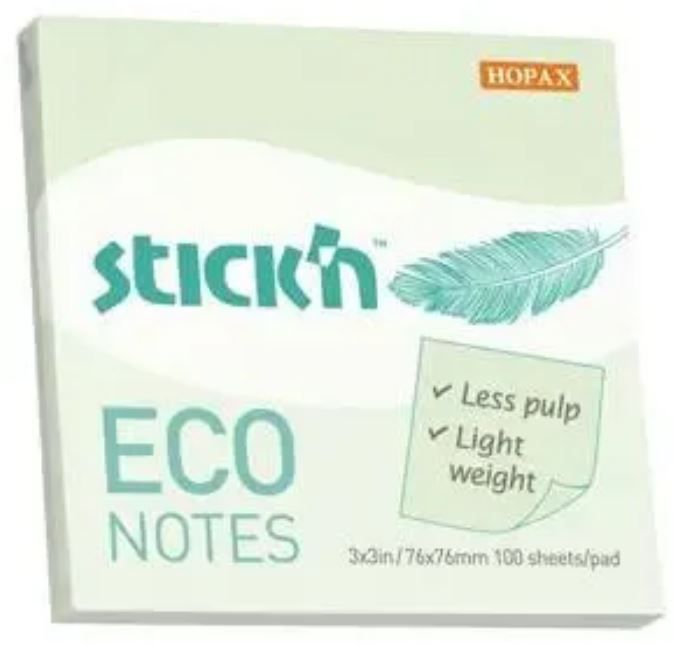 Блок самоклеящийся 76х76мм 100л зеленый пастель Stick`n ECO 1/12/216