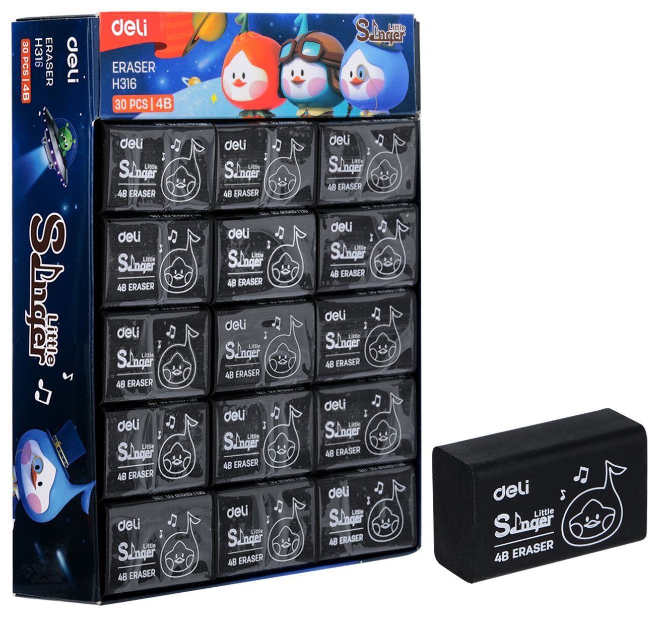 Ластик 32х22х12,5мм черный Deli Little Singer 1/30 купить оптом и в розницу в Казани