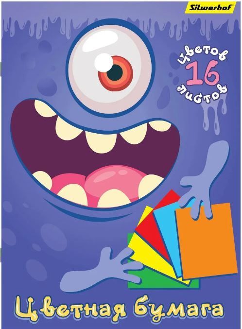 —Цветная бумага А4 16л 16цв офсетная Монстрики Silwerhof 1/50