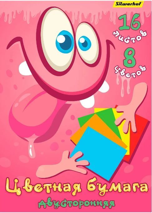 Цветная бумага А4 16л 8цв 2-сторонняя офсетная Монстрики Silwerhof 1/50