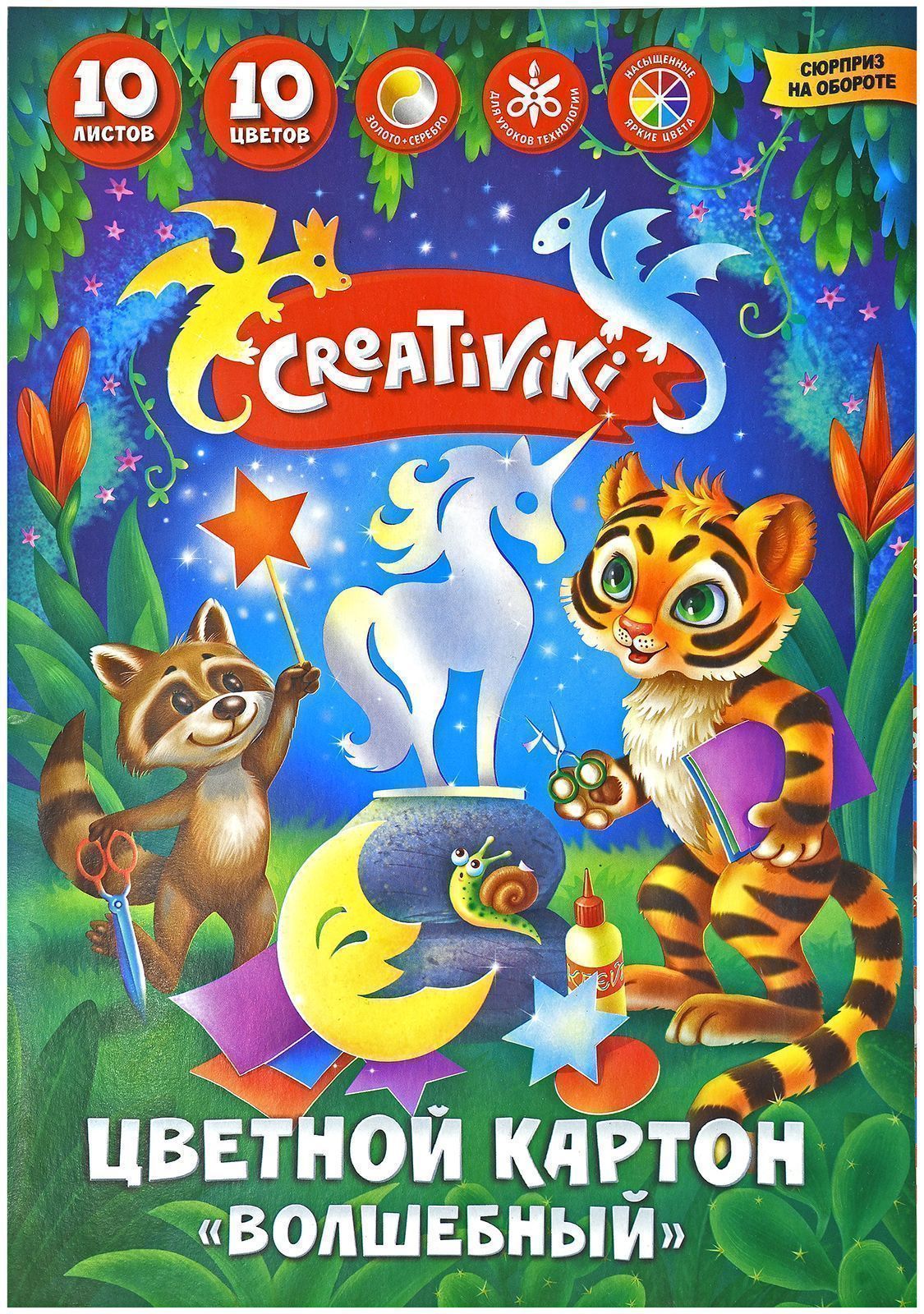 Цветной картон А4 10л 10цв немелованный Волшебный Creativiki 1/20 купить оптом и в розницу в Казани