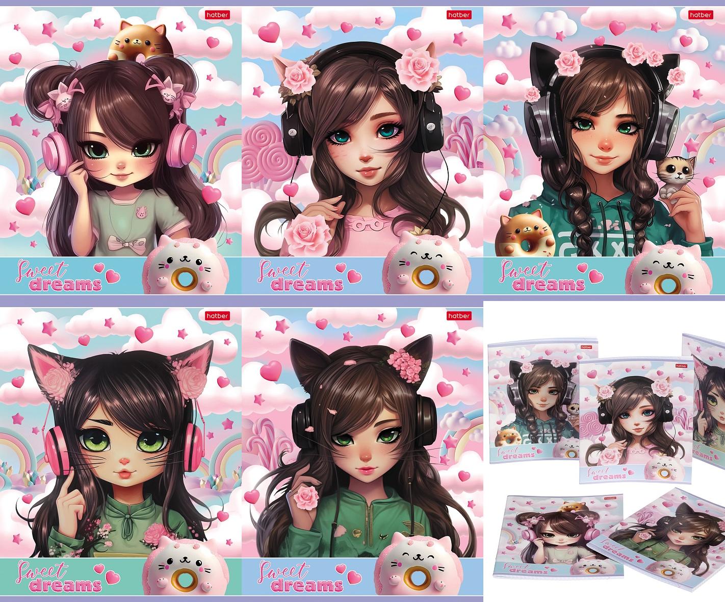 Тетрадь 40л А5 клетка скоба Девочка-кошка Хатбер 1/100