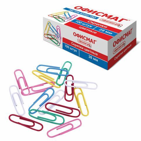 Скрепки 28мм 100шт цветные ОФИСМАГ 1/10/250 (Клиент)