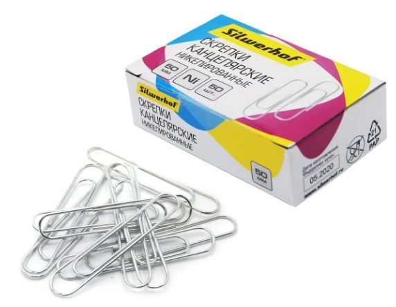 Скрепки 50мм 50шт никелерованные Silwerhof 1/10 купить оптом и в розницу в Казани