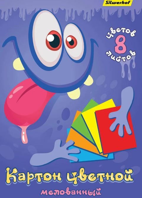 Цветной картон А4 8л 8цв мелованный Монстрики Silwerhof 1/25 купить оптом и в розницу в Казани