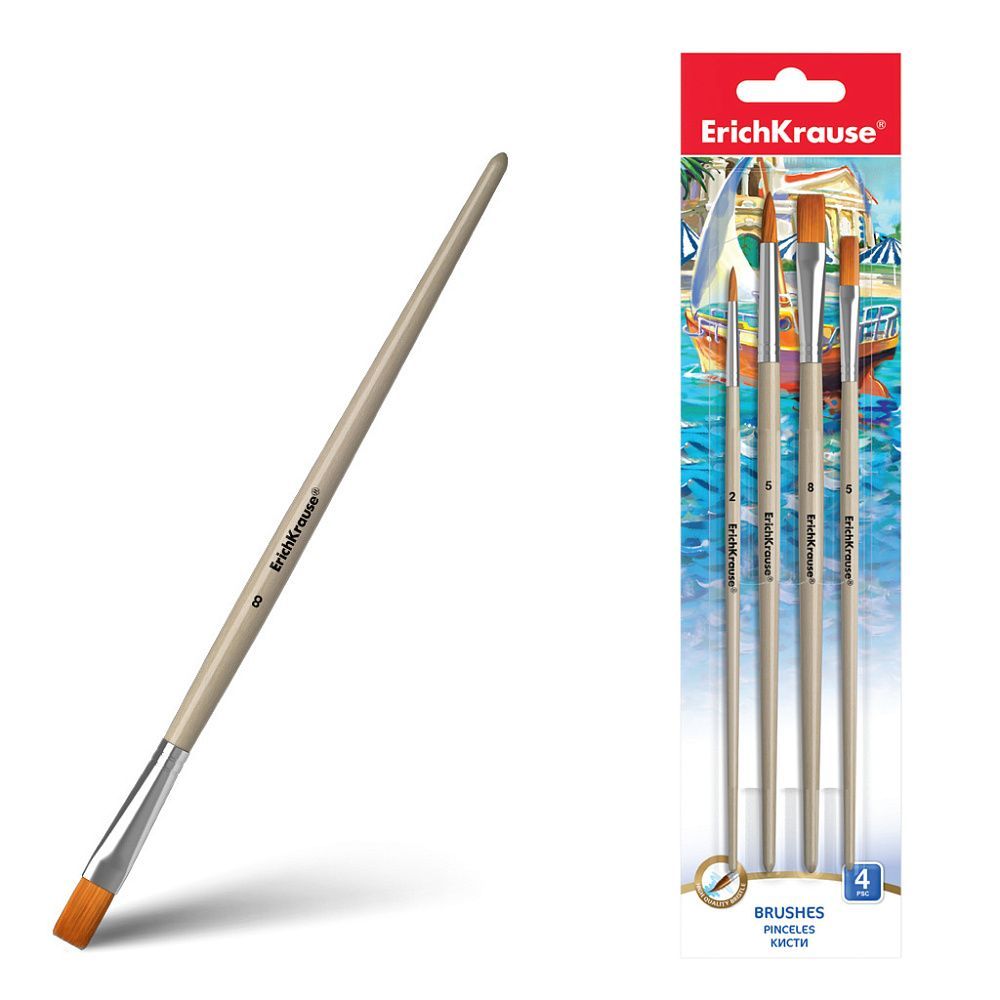 Кисти 4шт синтетика плоские № 5,8 круглые № 2,5 ErichKrause 1/12 купить оптом и в розницу в Казани
