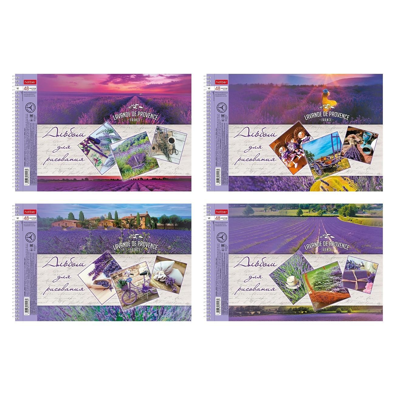 —Альбом для рисования 48л А4 обложка с тисн спираль Лавандовые поля Хатбер 1/32