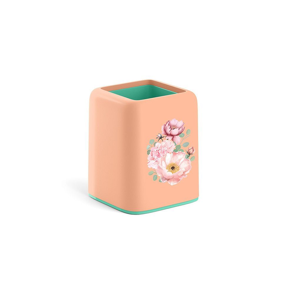—Подставка-органайзер 98х80х80мм квадрат персик с зеленым ErichKrause Forte Pastel Bloom 1/8