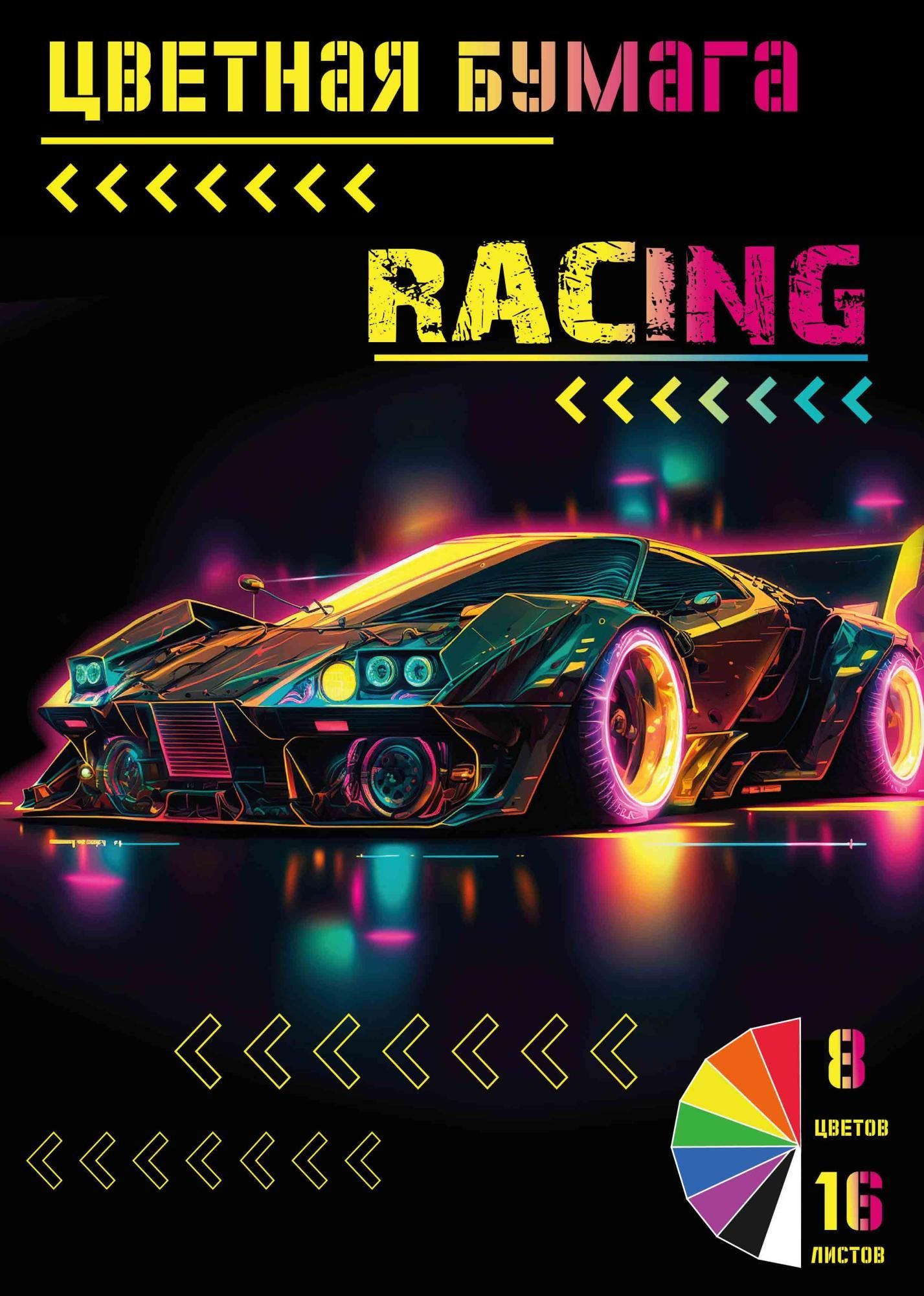 Цветная бумага А4 16л 8цв газетная Racing Centrum 1/50 купить оптом и в розницу в Казани