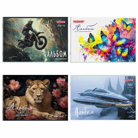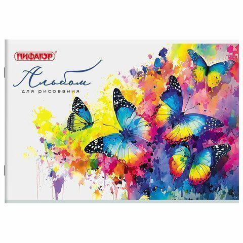 Альбом для рисования 40л А4 скоба обложка офсет Микс ПИФАГОР 1/8/40