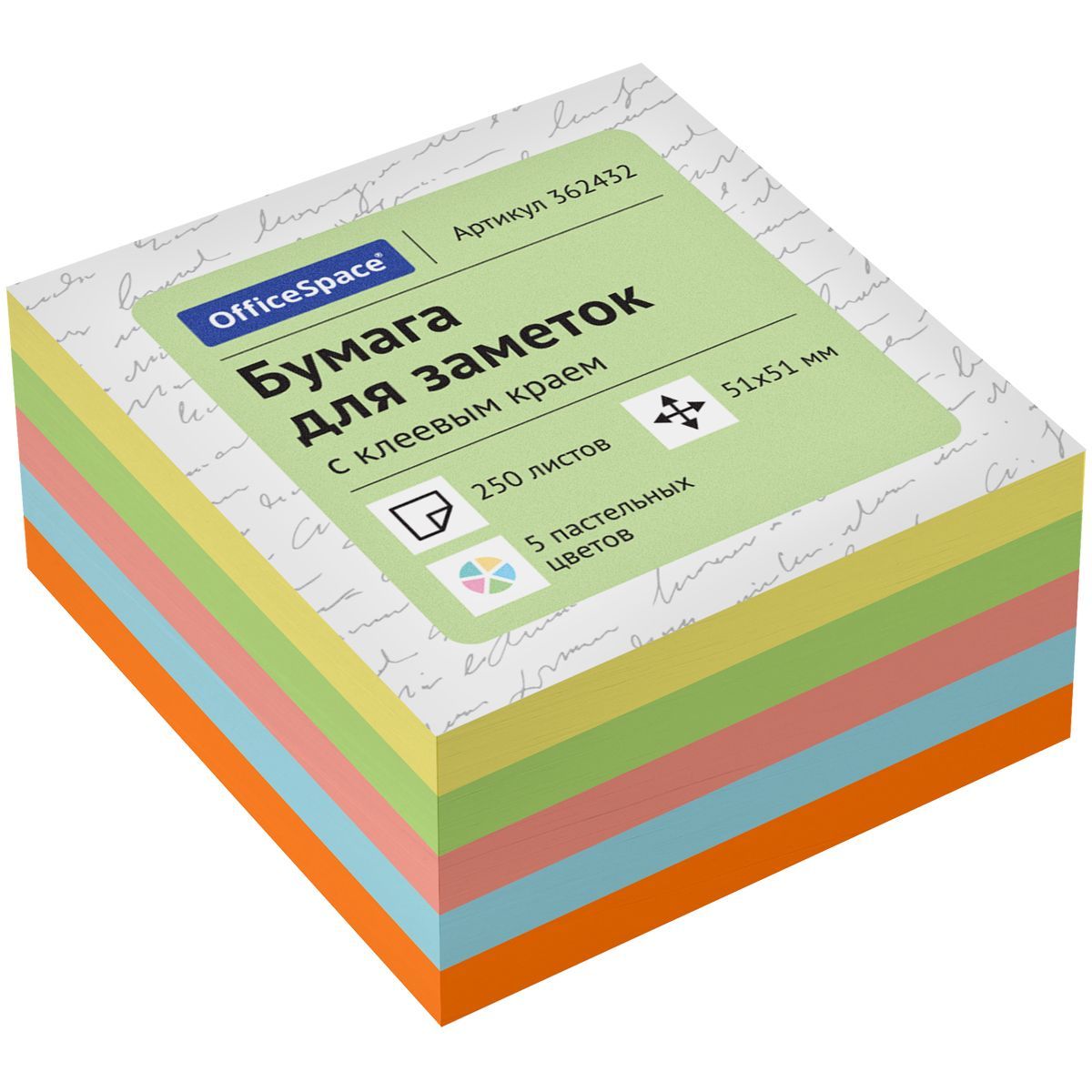 Блок самоклеящийся 51х51мм 250л 5цв пастель OfficeSpace 1/24/288