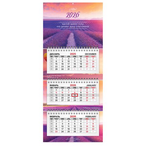 Календарь квартальный 2026 3 блока на 3-х гребнях с бегунком Лаванда BRAUBERG 1/40 купить оптом и в розницу в Казани