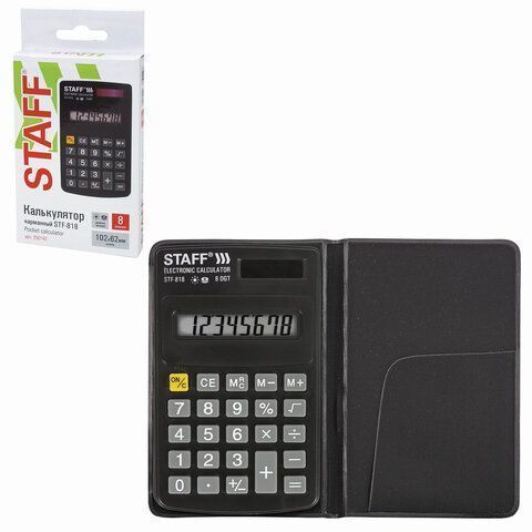 Калькулятор карманный STAFF STF-818, 8 разрядов, двойное питание, 102х62мм купить оптом и в розницу в Казани