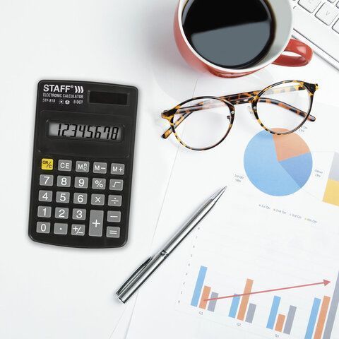 —Калькулятор карманный STAFF STF-818, 8 разрядов, двойное питание, 102х62мм