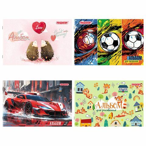 —Альбом для рисования 12л А4 обложка офсет ассорти МИКС-1 Пифагор 1/12/120