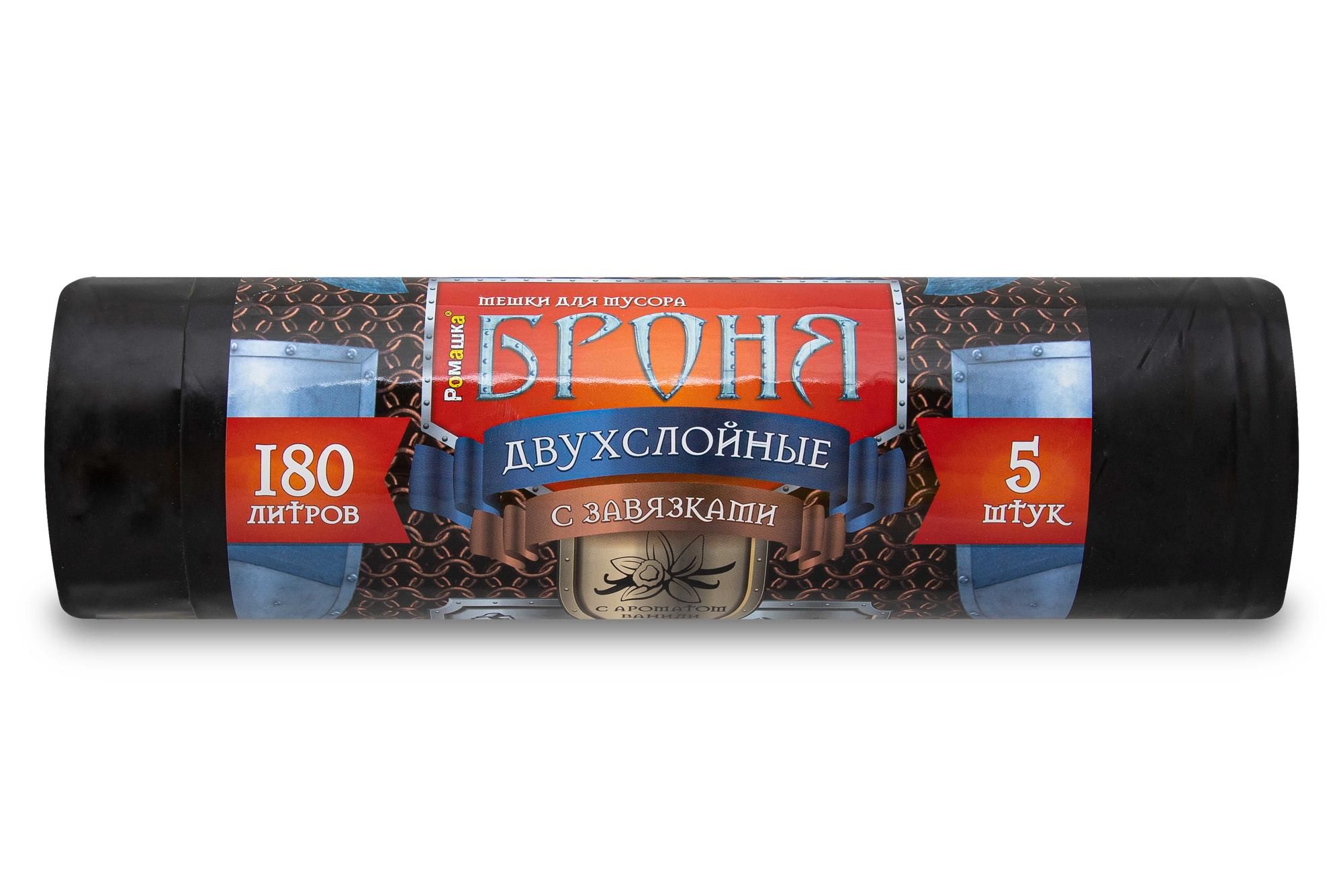 Мешок для мусора 180л рулон ПВД (90х110)-55 с завязками черный БРОНЯ 2-сл 108,4г Ромашка (5шт) 1/12 – купить хозяйственные товары в розницу с доставкой